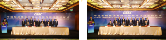 ????主要簽約項目包括:中國船舶集團所屬重慶川東船舶重工有限責任公司與中遠海運(上海)有限公司1.38萬噸不銹鋼化學品船項目;中國船舶集團所屬大連船舶重工集團有限公司與招商輪船VLCC項目;中國船舶集團所屬上海外高橋造船有限公司與工銀租賃21萬噸散貨船項目、外高橋造船與EPS公司20.9萬噸雙燃料散貨船項目;中國船舶集團所屬江南造船(集團)有限責任公司與太平洋氣體公司VLEC項目、江南造船與 SINOGAS86000立方米VLGC項目、江南造船與UECC公司3600車汽車滾裝船項目、江南造船與派格達克公司22000方乙烯船項目;中國船舶集團所屬廣船國際有限公司與斯坦納公司5萬噸甲醇雙燃料油船項目、廣船國際與EPS公司LNG雙燃料蘇伊士油船項目、中國船舶集團所屬滬東中華造船(集團)有限公司與MOL18600立方LNG加注船項目;中國船舶集團所屬武船集團青島北海船舶重工有限責任公司與中國船舶集團所屬中船租賃21萬噸散貨船項目、中國船舶集團所屬中船澄西船舶修造有限公司與國銀租賃85000噸散貨船項目、重慶川東船舶重工與重慶冠達世紀游輪650客游輪項目;中國船舶租賃與 Golar LNG 船舶改裝融資租賃項目、中國船舶租賃與SINOGAS86000立方米VLGC融資租賃項目;中船租賃與山東海運21萬噸散貨船融資租賃項目、中船租賃與Navig 8 成品油船聯合投資協議、中船租賃與新加坡星展銀行VLCC融資協議。
