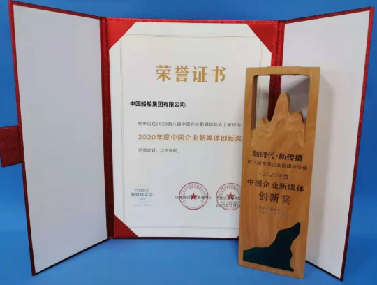 12月22日,由國務院國資委新聞中心、中央企業(yè)媒體聯(lián)盟聯(lián)合主辦的2020第八屆中國企業(yè)新媒體年會在北京舉行。本屆年會主題聚焦“融時代 · 新傳播”,中國船舶集團有限公司因在“奮斗者”號融媒體報道中的創(chuàng)新表現(xiàn),榮獲“2020年度中國企業(yè)新媒體創(chuàng)新獎”。