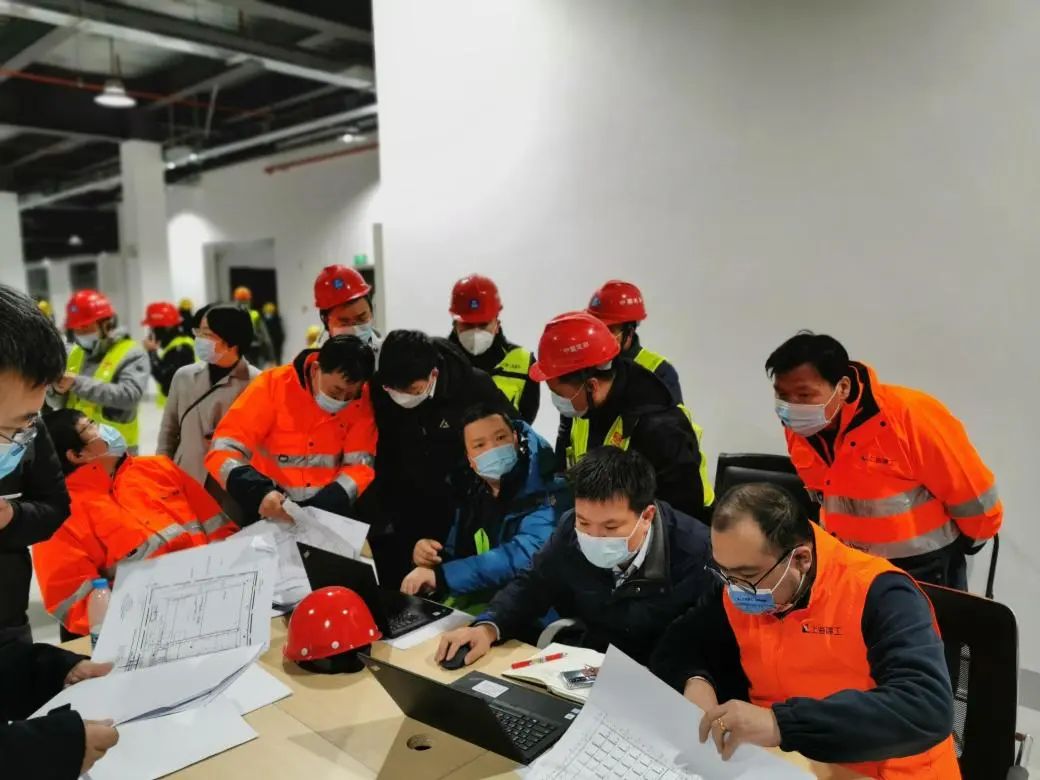 中船九院公司領導帶領項目團隊連續(xù)多日通宵在現(xiàn)場工作,及時協(xié)調(diào)工地各種情況,與集團公司相關部門并肩作戰(zhàn)、及時溝通,提高工作效能;同時堅持實時優(yōu)化設計,協(xié)調(diào)工程建設。項目設計負責人、中船九院副總建筑師王川第一時間組織團隊明確職責分工,確定了現(xiàn)場設計、后方設計、現(xiàn)場管理、外場支持等多專業(yè)協(xié)同配合機制,確保多條線同時作戰(zhàn)、運作高效。總工程師黃延驅(qū)車前往長興島專送工程保障設備,長興島實行“只進不出”,他就直接加入現(xiàn)場設計團隊,10天沒有下島。設計團隊中三位女設計師沈清清、胡雁、沈峻,更是巾幗不讓須眉,創(chuàng)造性地解決了暖風系統(tǒng)設計等一系列難題,堅守一線直到項目最終交付。項目管理團隊的戴鳳波、徐詠春、欒海林、王后軍、屈杰、倪冬輝等人把現(xiàn)場當作家,3天只在賓館住了3個小時,其余時間都在車上、辦公桌上度過。項目部顧建章、汪凱則協(xié)調(diào)運輸通行資源,解決了建設期間工程人員的基本飲食問題。與此同時,還有更多的人在后方作戰(zhàn)斗支撐,中船九院建筑一院院長曾志堅迅速組織本部設計團隊,緊急將居家辦公的相關專業(yè)骨干召回,組成了包括張瓊、瞿駸、郭鳳群、李嘯、蔣斌等18名骨干在內(nèi),建筑、結(jié)構(gòu)、水、電、風、經(jīng)濟各專業(yè)齊全的團隊。之后因項目需要,胡雁、瞿革、瞿駸上島加入現(xiàn)場設計團隊。