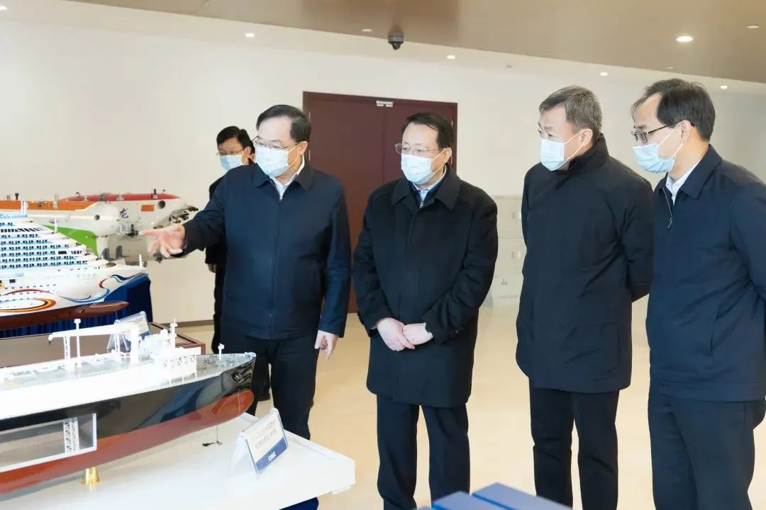 中國船舶集團總部于2021年12月遷駐上海,去年經(jīng)營業(yè)績再創(chuàng)新高。在溫剛、楊金成的陪同下,龔正察看了中國船舶集團重點船舶產(chǎn)品模型,深入了解中國船舶集團深化科技創(chuàng)新、實施重大項目,對標國際先進、夯實技術(shù)基礎等方面情況。