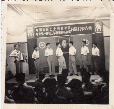 潘鏡芙在第二設(shè)計(jì)分局參加表演的照片(左四)