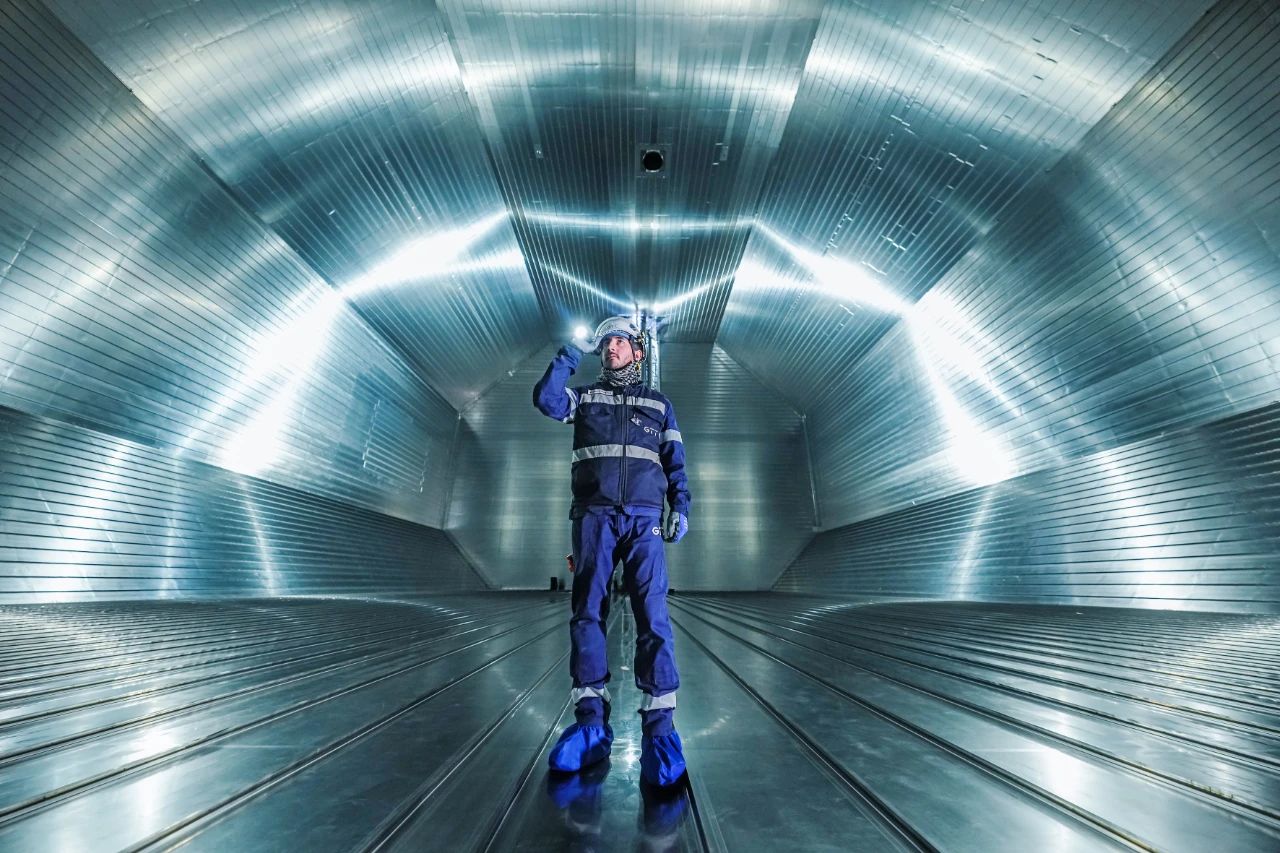 這是一幅難得一見的LNG船液貨艙內(nèi)部場(chǎng)景,猶如外星飛船艙室的氛圍,正是我們?cè)齑と艘淮缫淮缃ㄔ於伞?