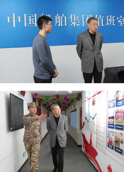 2月8日,中國船舶集團有限公司黨組書記、董事長溫剛在集團公司總部檢查春節總值班安排和中控室運行情況,走訪慰問堅守崗位員工。