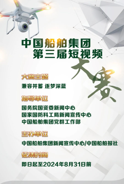 2024年是新中國成立75周年,也是全面貫徹黨的二十大精神的關鍵之年。這一年,中國船舶集團以習近平新時代中國特色社會主義思想為指導,全面實施“1234”高質(zhì)量發(fā)展方略,以“三贏”提質(zhì)效、以改革求突破、以創(chuàng)新促發(fā)展,全面開創(chuàng)建設世界一流船舶集團新局面。為更加全面生動展示中國船舶人凝心聚力、砥礪奮發(fā),建設世界一流,向新中國成立75周年獻禮的精神風貌與奮斗熱情,中國船舶集團新聞宣傳中心/中國船舶報社組織開展“兼容并蓄 逐夢深藍”為主題的中國船舶集團第三屆短視頻大賽。