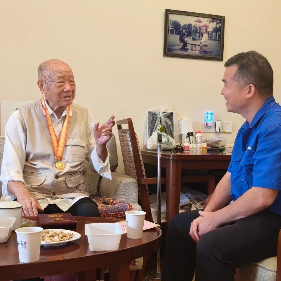 賈海英在焦英杰家中與其促膝交談,悉心詢問他的身體狀況和生活情況,專注聽他講述抗戰(zhàn)時期的崢嶸歲月,頻頻點頭回應并追問細節(jié),衷心地感謝他在抗戰(zhàn)時期作出的巨大犧牲和貢獻,并祝愿他身體健康、福壽綿長;同時,叮囑總部各部門及相關(guān)單位要及時關(guān)心、了解抗戰(zhàn)老兵的生活和工作情況,使大家真切感受到集團公司黨組的關(guān)懷與溫暖。