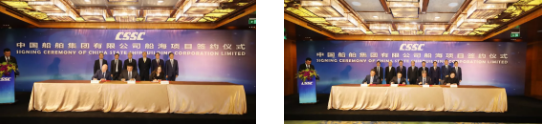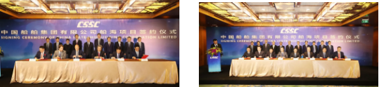 ????主要簽約項目包括:中國船舶集團(tuán)所屬重慶川東船舶重工有限責(zé)任公司與中遠(yuǎn)海運(上海)有限公司1.38萬噸不銹鋼化學(xué)品船項目;中國船舶集團(tuán)所屬大連船舶重工集團(tuán)有限公司與招商輪船VLCC項目;中國船舶集團(tuán)所屬上海外高橋造船有限公司與工銀租賃21萬噸散貨船項目、外高橋造船與EPS公司20.9萬噸雙燃料散貨船項目;中國船舶集團(tuán)所屬江南造船(集團(tuán))有限責(zé)任公司與太平洋氣體公司VLEC項目、江南造船與 SINOGAS86000立方米VLGC項目、江南造船與UECC公司3600車汽車滾裝船項目、江南造船與派格達(dá)克公司22000方乙烯船項目;中國船舶集團(tuán)所屬廣船國際有限公司與斯坦納公司5萬噸甲醇雙燃料油船項目、廣船國際與EPS公司LNG雙燃料蘇伊士油船項目、中國船舶集團(tuán)所屬滬東中華造船(集團(tuán))有限公司與MOL18600立方LNG加注船項目;中國船舶集團(tuán)所屬武船集團(tuán)青島北海船舶重工有限責(zé)任公司與中國船舶集團(tuán)所屬中船租賃21萬噸散貨船項目、中國船舶集團(tuán)所屬中船澄西船舶修造有限公司與國銀租賃85000噸散貨船項目、重慶川東船舶重工與重慶冠達(dá)世紀(jì)游輪650客游輪項目;中國船舶租賃與 Golar LNG 船舶改裝融資租賃項目、中國船舶租賃與SINOGAS86000立方米VLGC融資租賃項目;中船租賃與山東海運21萬噸散貨船融資租賃項目、中船租賃與Navig 8 成品油船聯(lián)合投資協(xié)議、中船租賃與新加坡星展銀行VLCC融資協(xié)議。