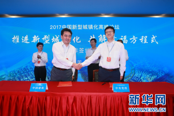 高峰論壇期間,舉行了中央黨校與中國建筑新型城鎮化研究合作簽約、財政部PPP中心與中國建筑合作簽約、天津市濱海新區與中建方程關于新城鎮新型城鎮化項目合作簽約、天津市津南區與中建方程關于葛沽鎮城市綜合開發項目合作簽約、天津市河東區與中建方程關于金貿產業園項目合作簽約。中央黨校與中國建筑的合作始于2015年,本次簽約代表雙方在中國特色新型城鎮化研究領域的繼續合作正式開啟。課題組將在雙方領導的指導和支持下,在原有研究成果的基礎上,繼續加大資源投入,繼續加強成果的應用和推廣,深化理論與實踐的有機融合,共同促進中國特色新型城鎮化健康持續發展。