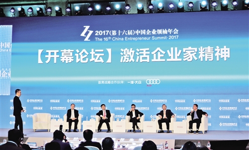 圖為“2017(第十六屆)中國(guó)企業(yè)領(lǐng)袖年會(huì)”開(kāi)幕主題論壇現(xiàn)場(chǎng)。 記者 崔國(guó)強(qiáng)攝