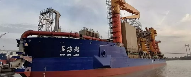 10月31日,黃埔文沖分別為美國Del Monte公司建造的600FEU全冷箱集裝箱船1號船和佛山市盈昊泰貿易有限公司建造的7800千瓦自航絞吸式挖泥船順利出塢。7800千瓦自航絞吸式挖泥船總長148米,最大挖深38米,配置了挖巖、挖黏土和挖沙等3種不同類型的絞刀,適用于挖掘淤泥、黏土、密實砂質土、礫石、強風化巖以及抗壓強度在50兆帕以內的中弱風化巖; 配備雙槳、雙轉動導流管、全電力驅動裝置,總裝機功率達25260千瓦,為亞洲最大功率自航絞吸式挖泥船,是我國新一代沿海水域、港口、航道疏浚、吹填的“神兵利器”。