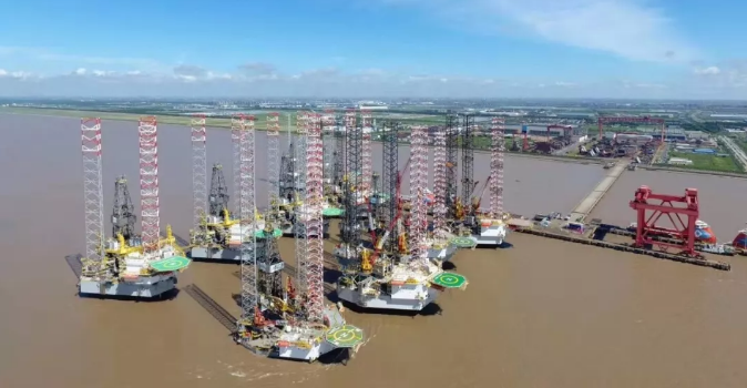 上海外高橋造船建造的兩座海上自升式鉆井平臺(tái)交付運(yùn)營