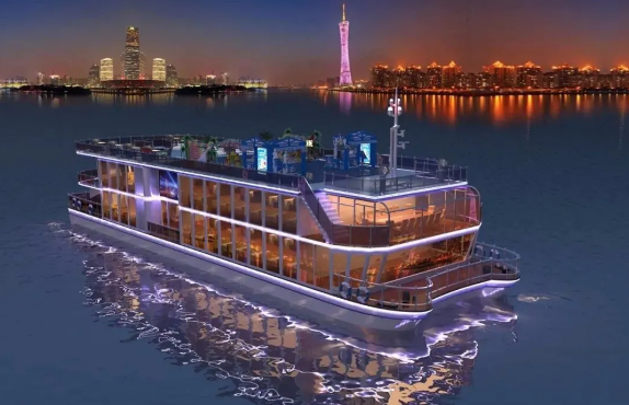 ????280客位珠江夜游船總長(zhǎng)38.8米,型寬12.0米,型深3.2米,航速10.0節(jié),是粵港澳大灣區(qū)首艘入級(jí)商業(yè)運(yùn)營(yíng)新能源客船,外觀(guān)設(shè)計(jì)新穎獨(dú)特,純電池動(dòng)力突顯低噪音、低排放、綠色環(huán)保的優(yōu)勢(shì),對(duì)于推動(dòng)粵港澳大灣區(qū)旅游和交通產(chǎn)業(yè)的綠色發(fā)展具有重要意義。