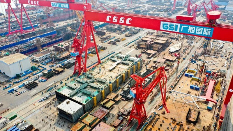 客滾船薄板生產線剛剛投產,分段制作晝夜不息、井然有序