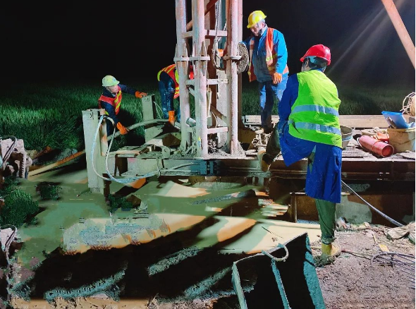 為了按期完成丹河新城項目相關建設任務,環境公司下屬分公司項目部各崗位24小時連軸轉,工人分班倒,輪流休息,工程設備24小時不停歇。
