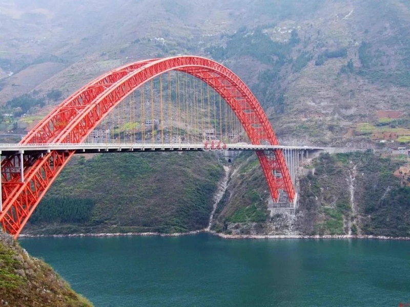 天峨龍灘特大橋為目前世界最大跨度的鋼管拱橋,主跨達到600米,屬勁性骨架鋼管拱橋,全橋總用鋼量約8724噸,其中主拱用鋼量約6988噸。該橋?qū)⒊轿浯瘓F目前在制的平南三橋575米跨徑,再次刷新世界最大跨度鋼管拱橋的紀錄。