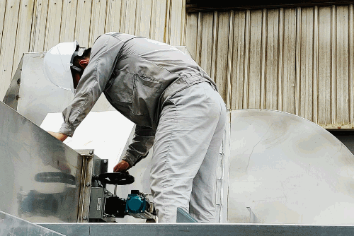 八院海博威集團(tuán)海通公司環(huán)保工程師,正為滬東中華VOCs廢氣治理項(xiàng)目設(shè)備進(jìn)行調(diào)試。