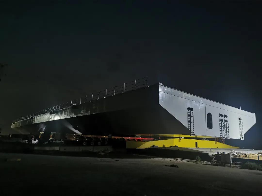 同樣承擔了深中通道隧道沉管鋼殼制造任務的中國船舶集團旗下廣船國際,近日剛剛完成了E15管節鋼殼的過駁交付。E16鋼殼計劃在9月底前進行聯合驗收;E17鋼殼則正在進行大節段總組。