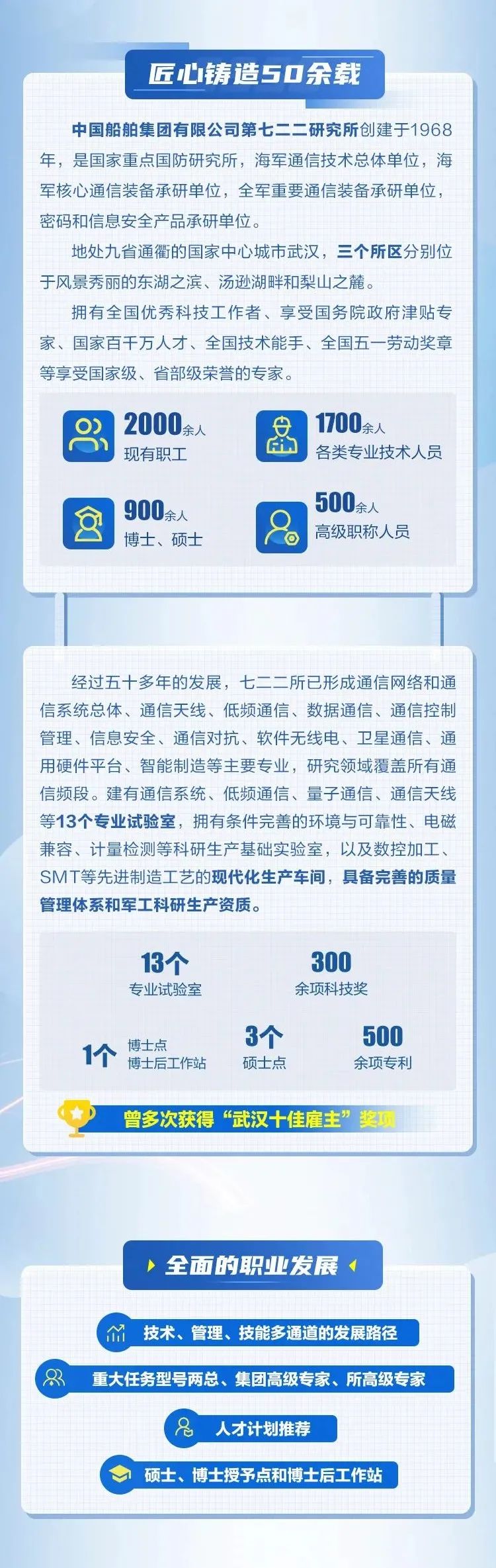 中國船舶集團旗下七〇三所、七二二所校園招聘啟事