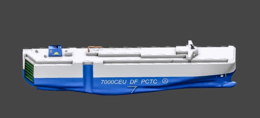 該型船可裝載7000輛汽車,采用先進(jìn)的天然氣(LNG)/燃油雙燃料推進(jìn)系統(tǒng)設(shè)計,可在3種燃料模式下航行,續(xù)航力最高可達(dá)15,000海里。配置了高壓岸電系統(tǒng),采取了減阻防污漆等各類節(jié)能措施,EEDI(能效營運(yùn)指標(biāo))滿足國際海事組織最新的第二階段(phaseⅡ)要求,是一艘節(jié)能環(huán)保高效的汽車運(yùn)輸船。