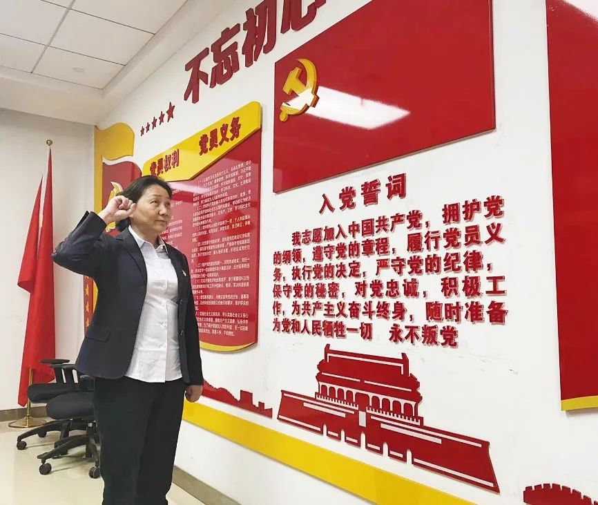 火紅的黨員徽章閃耀在胸前,更閃耀在亢群的心中,折射出她用實際行動磨練的堅強意志,折射出她以堅定信念淬煉的火紅初心。前途尚遠,她將帶著黃群的精神與追求,銘記著自己的拳拳諾言,用真心澆灌每一次精益求精的服務,將汗水奉獻給每一項攻堅克難的工作,將許黨報國的壯歌繼續唱響!