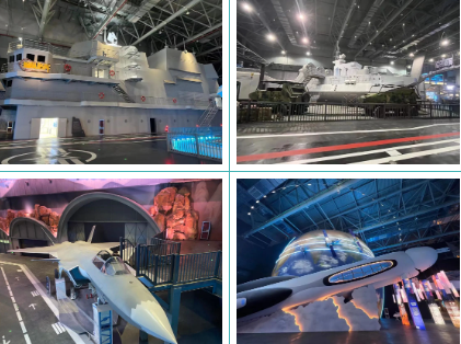 以先進武器裝備為原型,館內建有全比例、高比例航母艦島、核潛艇、奮斗者號載人深潛器、殲20飛機、運20飛機、天宮空間站、星火號宇宙飛船、99A坦克等,集成聲光電、虛擬現實、動感平臺等對標國際一線主題樂園的體驗技術,采用多種體驗形式和手段,編制精彩成長歷險故事,以主題游樂、研學教育、科普展示、文創商業等多種業態,為游客帶來一場高科技、新技術的軍事主題沉浸體驗。
