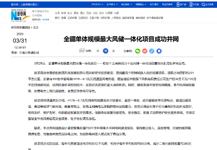 近日,中國船舶集團旗下中船科技子公司中船風電和哈密國投聯合開發的新疆哈密百萬千瓦風儲一體化項目首臺風機成功并網發電,央視《新聞聯播》、新華網和《新疆日報》等紛紛關注報道。