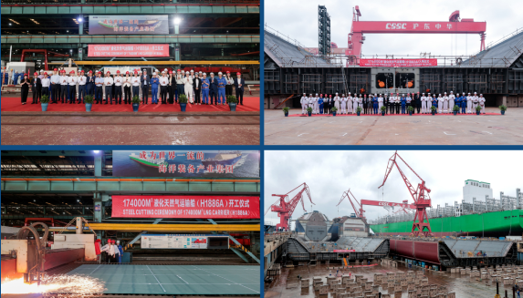日前,中國船舶集團旗下滬東中華實現2船入塢(H1798A、H1882A)、1船開工(H1886A)三大生產節點,3艘174000立方米LNG船進入建造新階段,滬東中華實施LNG船產能倍增戰略邁上全面提速新征程。