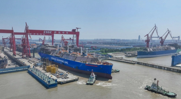 8月9日,中國(guó)船舶集團(tuán)旗下滬東中華3艘第五代LNG船生產(chǎn)節(jié)點(diǎn)告捷,實(shí)現(xiàn)2船出塢、1船開(kāi)工三大生產(chǎn)節(jié)點(diǎn)。