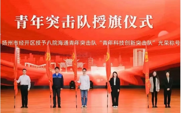 志愿服務獻愛心,組建黨員、“愛在深藍”青年、“愛心媽媽”等多支志愿服務隊,常態化開展國防科普進校園、春蕾助學、家電維修等志愿活動,傳遞溫暖;公益慈善傳溫情,積極參與“5·19慈善一日捐”并獲評“愛心單位”,堅持組織無償獻血活動,多次獲評揚州市無償獻血先進集體,19人獲得全國無償獻血奉獻獎,其中3人獲得金獎;幫扶共建助振興,連續20年參與江蘇省“五方掛鉤”幫扶,持續投入資金、派駐人員、開展消費幫扶。自2021年起,與揚州市邗江區方巷鎮先進村、施橋鎮永順村深入開展“城鄉結對、文明共建”活動,資助建設農產品電商平臺、紅色書屋等項目,助力鄉村振興。