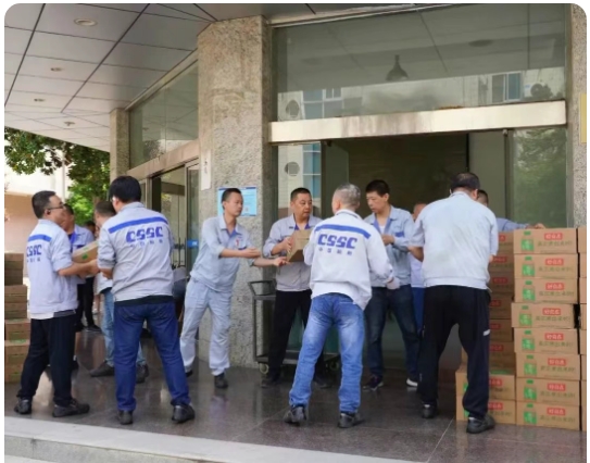 為應對持續高溫天氣,中船物資全面部署防暑降溫工作,切實保障一線員工健康安全。下屬各子公司嚴格落實安全生產責任,組織專項安全檢查,強化作業現場安全管理;結合不同崗位作業強度,科學制定防暑降溫方案,并通過安全教育提升員工應急處置能力。同時,積極開展“關愛員工送清涼”慰問活動,為一線員工發放藿香正氣水、清涼飲料等防暑物資,并升級改造員工休息室,改善高溫作業環境。