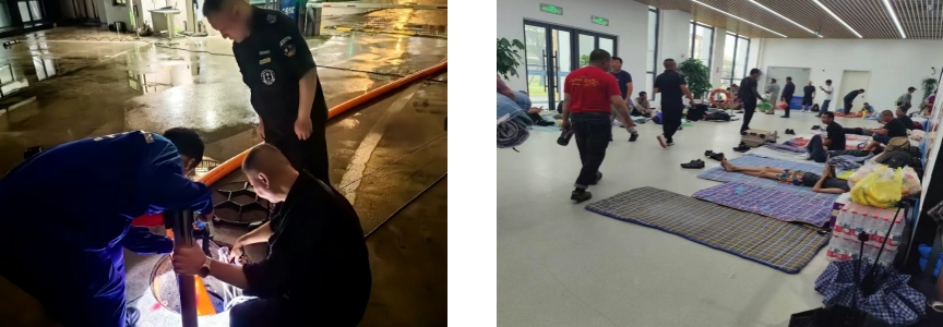 “竹節(jié)草”臺風影響期間,中船九院主要負責人帶班生產(chǎn),督促落實應(yīng)急準備工作;建立防汛防臺工作群,保持聯(lián)動,及時通報現(xiàn)場信息;安排人員值守本部大樓及子公司大樓,做好夜間巡視。