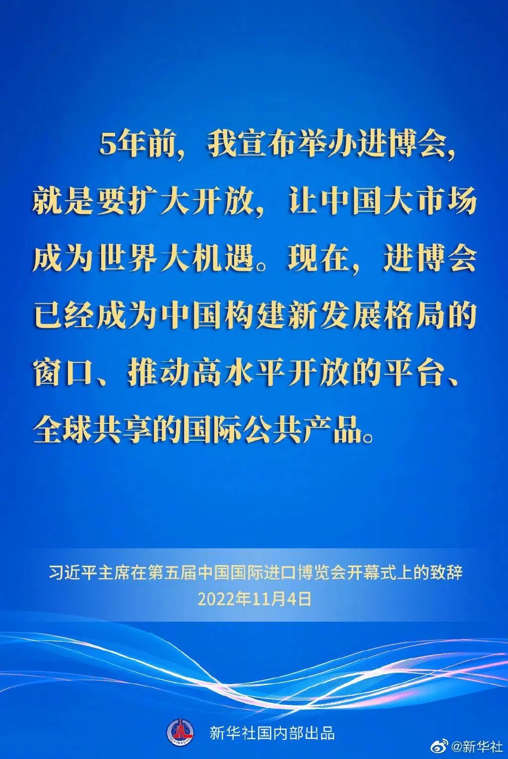 11月4日晚,國家主席習近平以視頻方式出席在上海舉行的第五屆中國國際進口博覽會開幕式并發表題為《共創開放繁榮的美好未來》的致辭。
