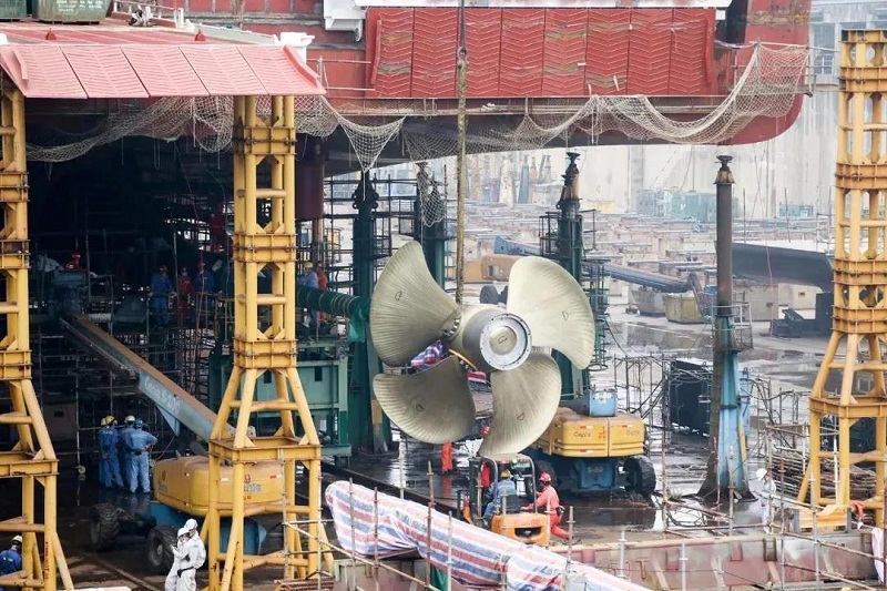 ????廣船國際自2月10日起復工復產,其中阿爾及利亞客滾船建造是廣船國際重點工作之一。廣船國際先后克服勞動力不足和資材供應受阻等客觀困難,逆“疫”而上,確保該船順利出塢。