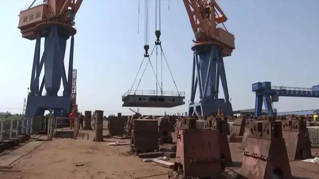 ????4月15日上午,中國船舶集團旗下中船澄西完成下水、上船臺、開工三大生產(chǎn)節(jié)點。