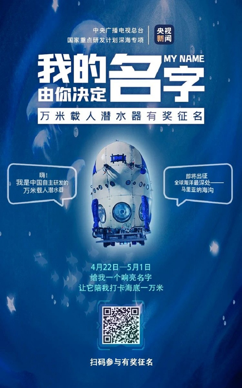 萬米載人潛水器要出發嘍!我們的“娃兒”請你給起名!