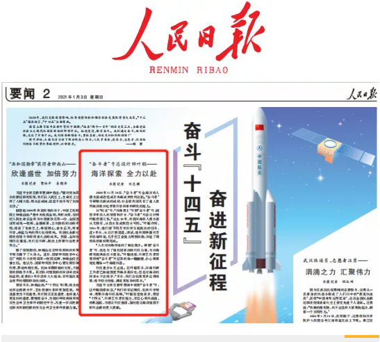 1月3日,人民日報在要聞二版【奮斗“十四五”  奮進新征程】專題報道中,以“海洋探索 全力以赴”為題刊發了對中國船舶集團七〇二所副所長“奮斗者”號總設計師葉聰的專訪。