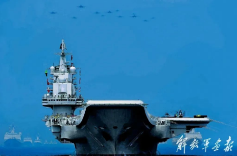2018年4月12日,中央軍委在南海海域隆重舉行海上閱兵,遼寧艦航母編隊精彩亮相。(攝影 張 雷)