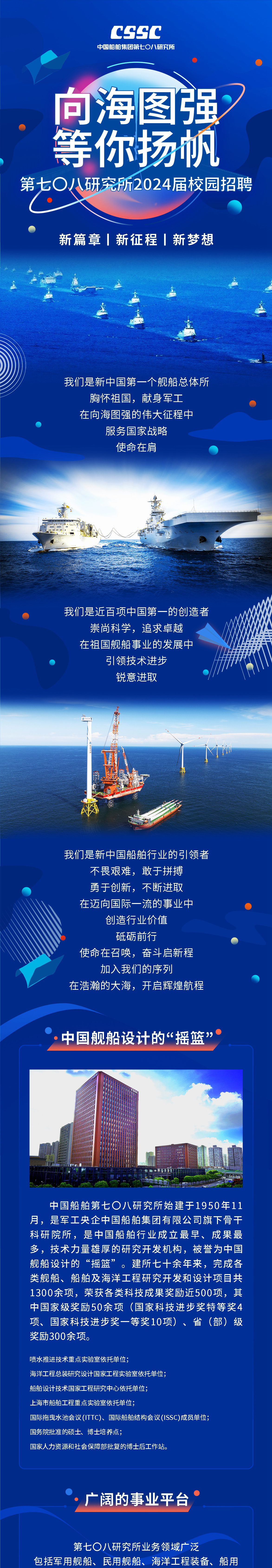 中國船舶集團七〇八所2024屆校園招聘正式啟動